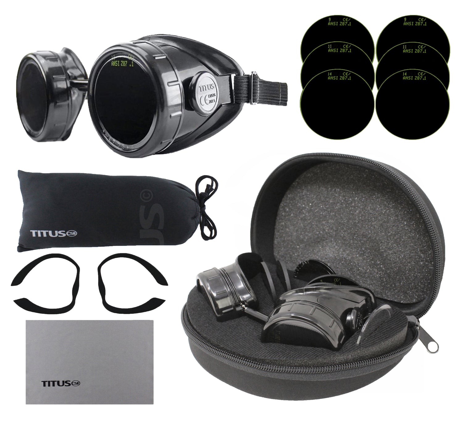TITUS Cup Type C Frame Industrial Quality Welding Goggles UV IR Green 5,7,8,9,10,11,12,13, or 14 Filter With Case & Pads