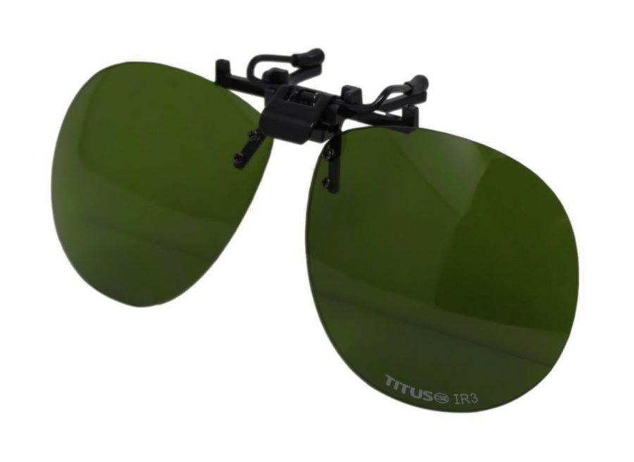 Clip On, Spring Loaded, Flip up design feature Polycarbonate Lenses with IR and UV Protection. Easily clip to Safety, Welding, or RX Glasses. Can be combined with TITUS Welding Glasses to add further protection. Combine with your IR#3 Glasses and net IR#6 or IR#8. Combined with Welding IR#5 Glasses and net IR#8 or IR#10.